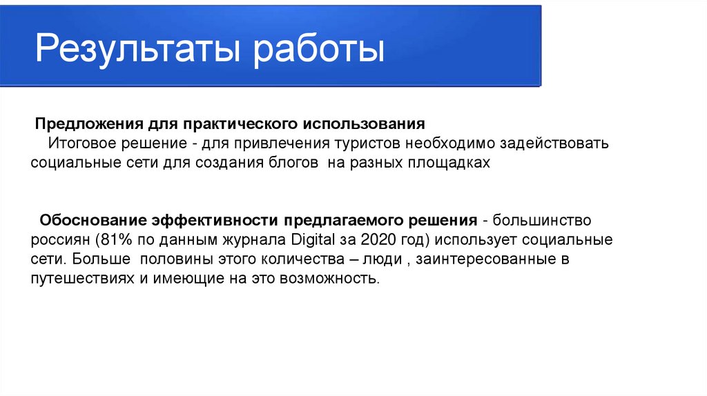 Результаты работыПредложения для практического использования