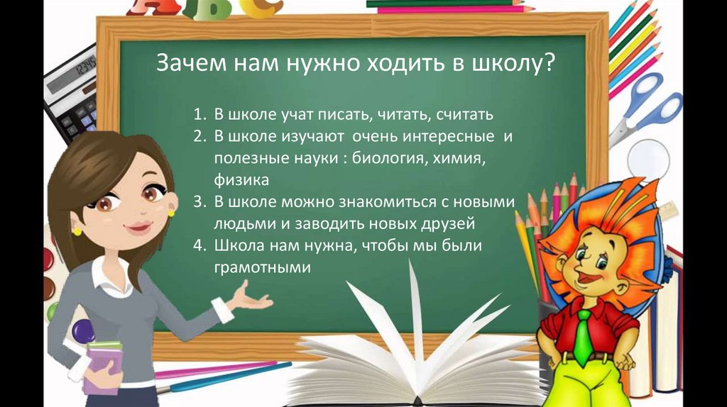 Зачем нам нужно ходить в школу?1. В школе учат писать, читать, считать
