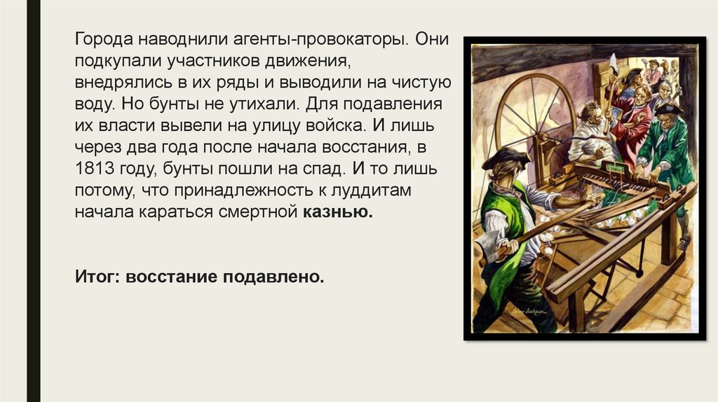 Наибольший размах движениеразрушителей машин приобрело в 18111813гг. Участники этого движения