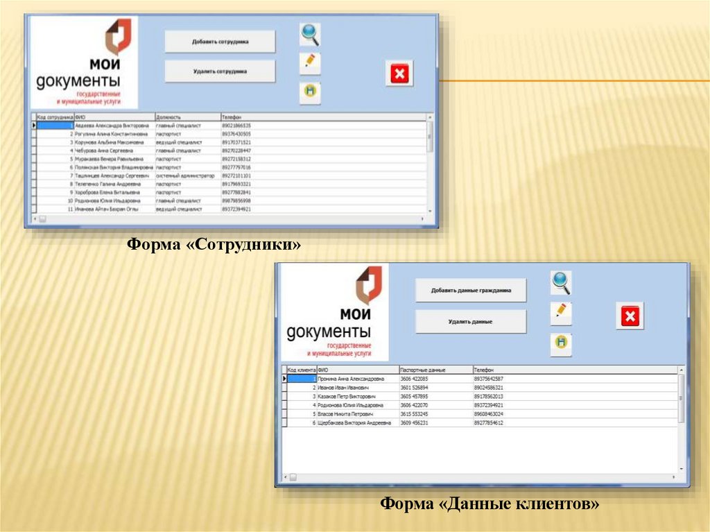 Форма «Сотрудники»Форма «Данные клиентов»