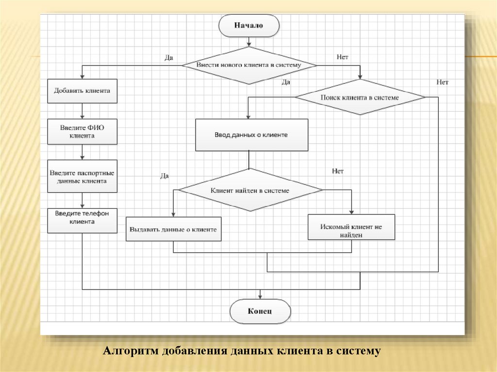 Алгоритм добавления данных клиента в систему11.