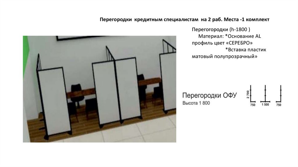 Перегородки кредитным специалистам на 2 раб. Места -1 комплектПерегогородки (h-1800 )