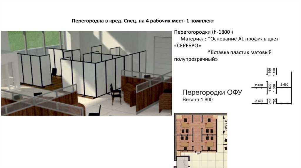Перегородка в кред. Спец. на 4 рабочих мест- 1 комплектПерегогородки (h-1800 )