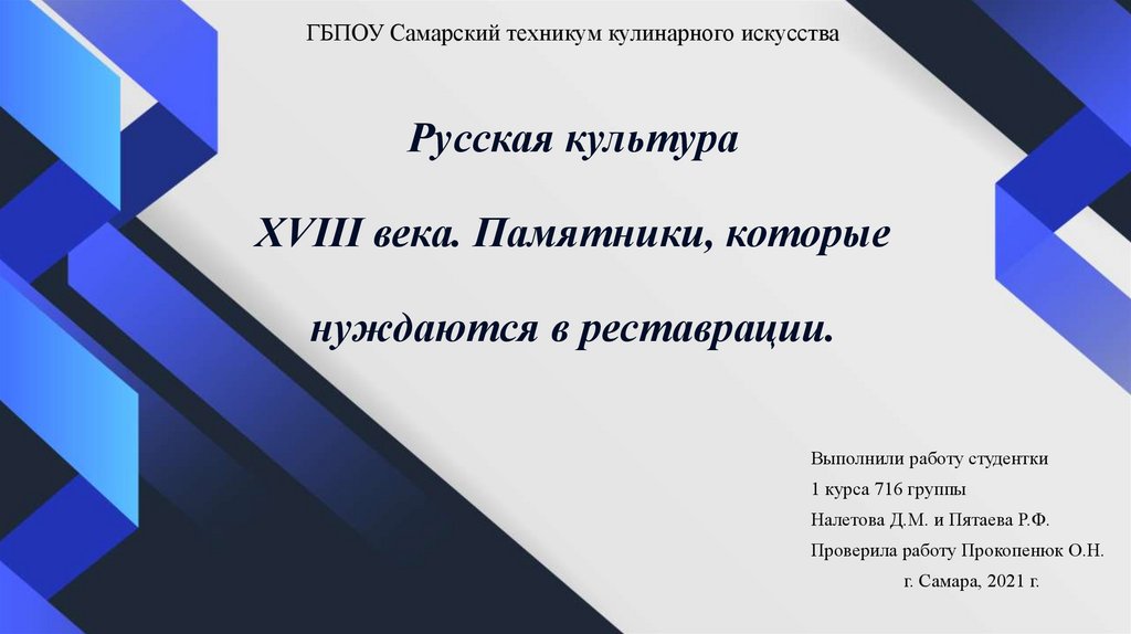 ГБПОУ Самарский техникум кулинарного искусстваРусская культура