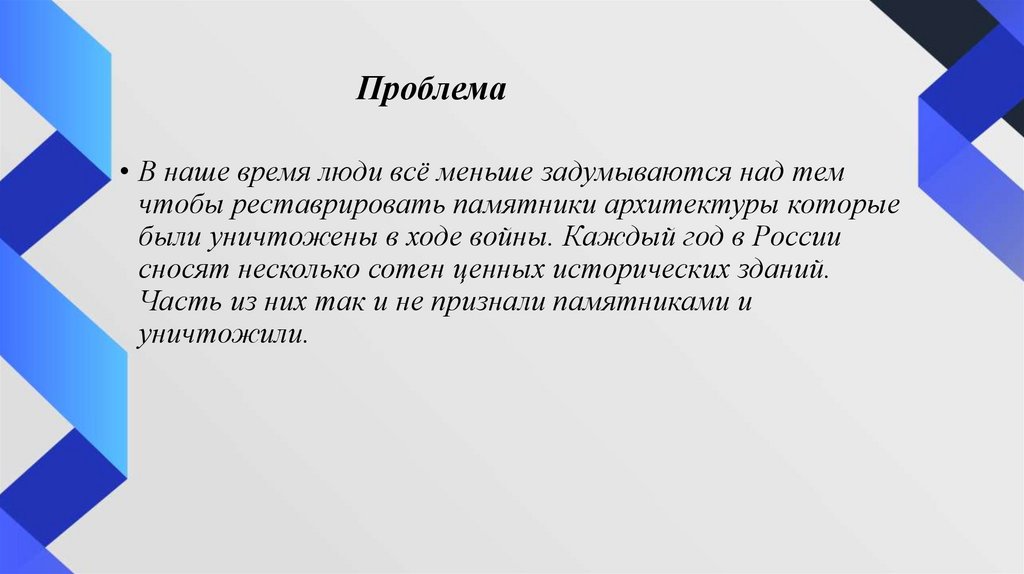 памятников пострадали в ходе войны 19411945гг. Им стоит уделить особое внимание