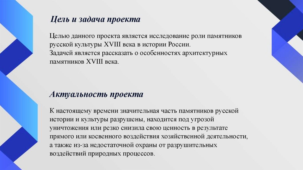 Цель и задача проектаЦелью данного проекта является исследование роли памятников