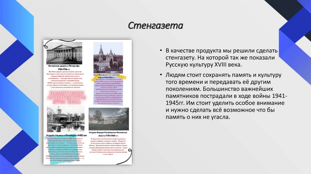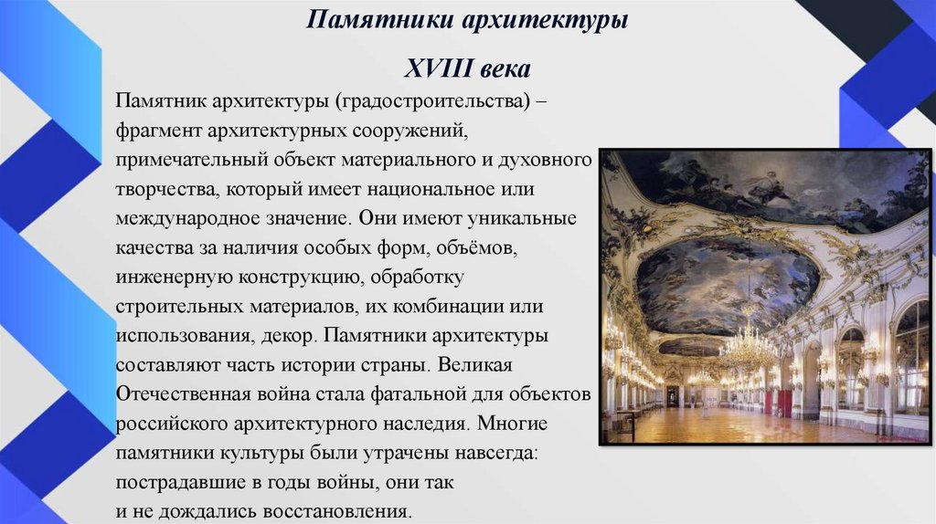 Русская культура XVIII века. Памятники, которые нуждаются в реставрации
