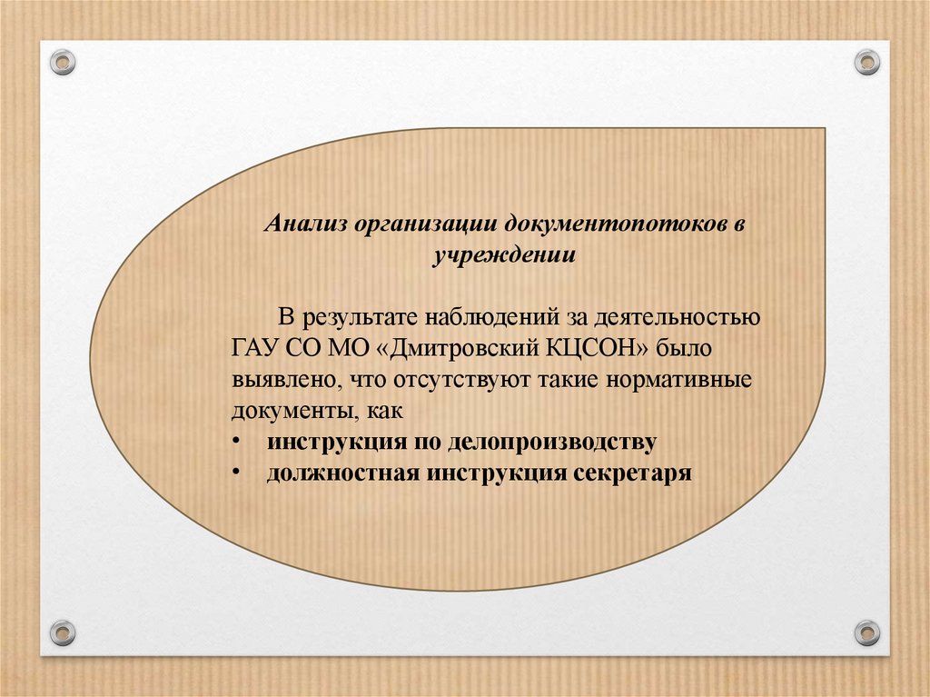 документопотоков в ГАУ СО МО «Дмитровский КЦСОН».