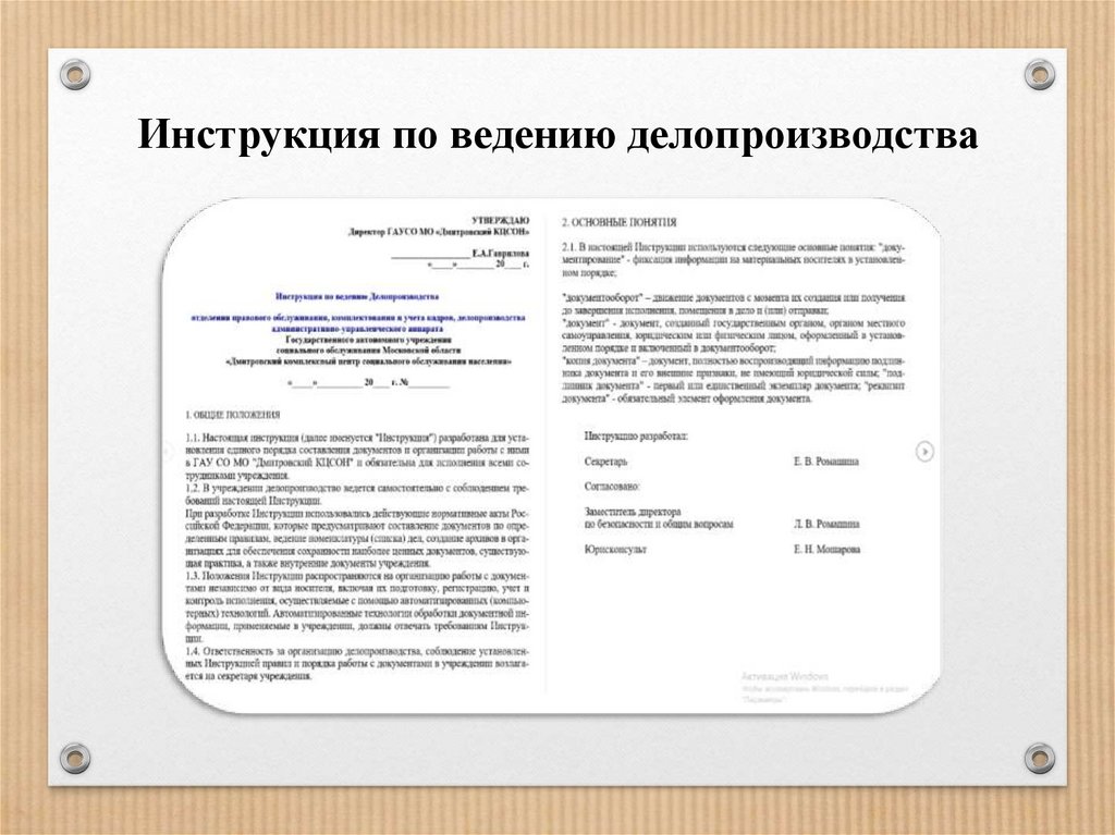 документооборота в ГАУ СО МО «Дмитровский КЦСОН».
