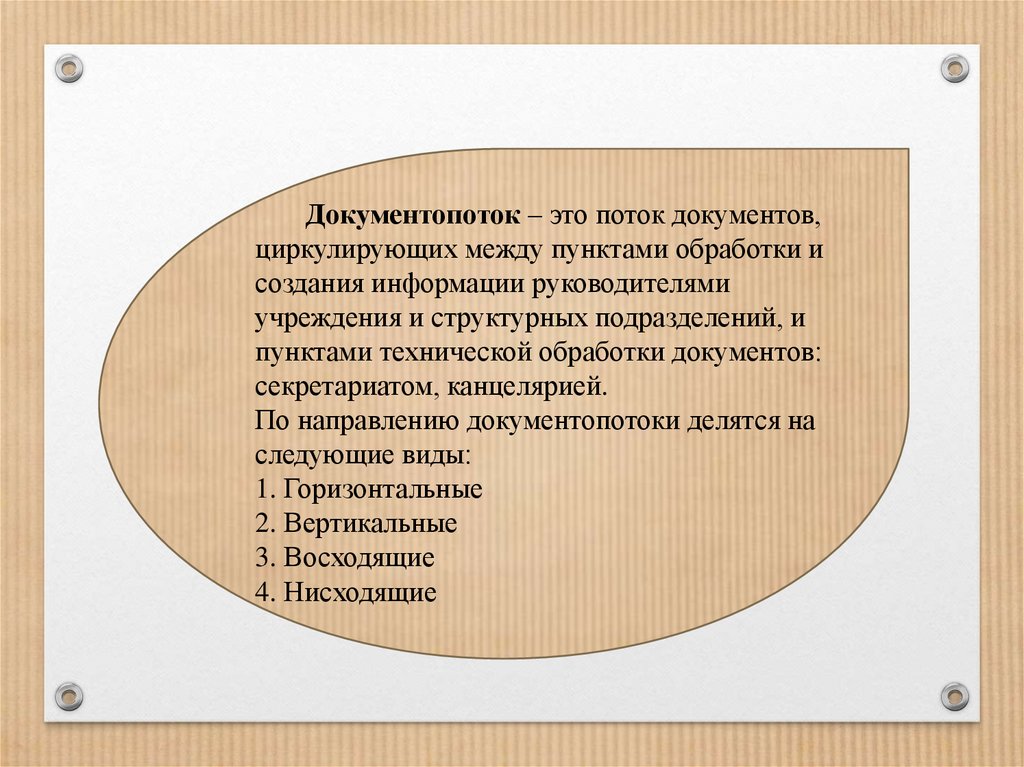 Документопоток – это поток документов,циркулирующих между пунктами обработки и