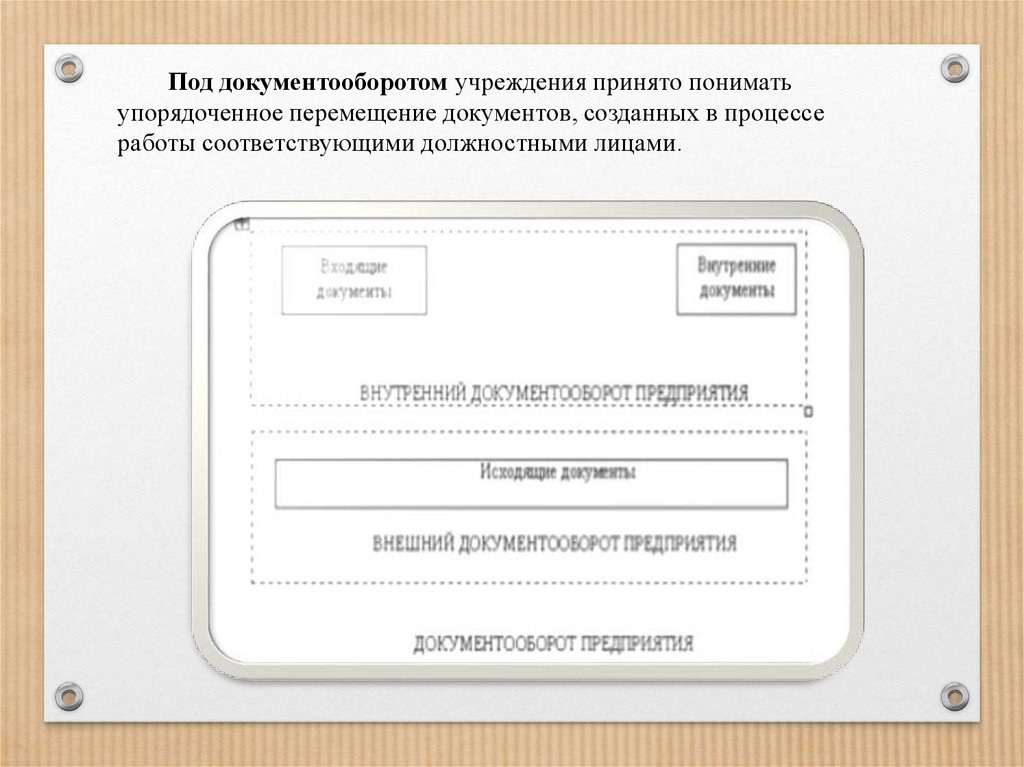 Под документооборотом учреждения принято пониматьупорядоченное перемещение документов, созданных в процессе