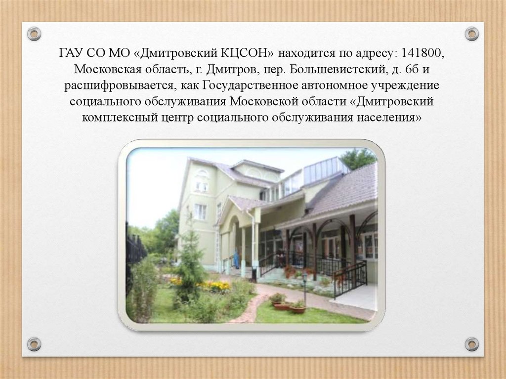 ГАУ СО МО «Дмитровский КЦСОН» было