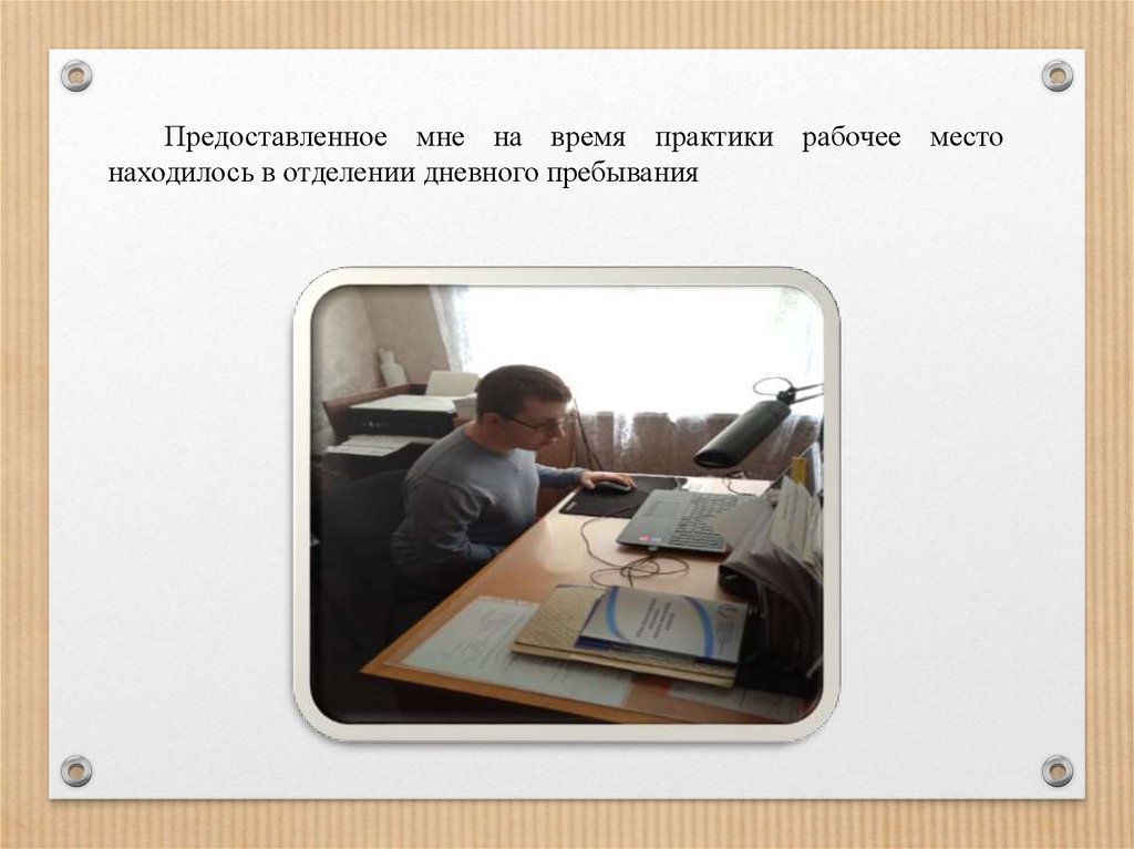 Предоставленное мне на время практики рабочее местонаходилось в отделении дневного пребывания