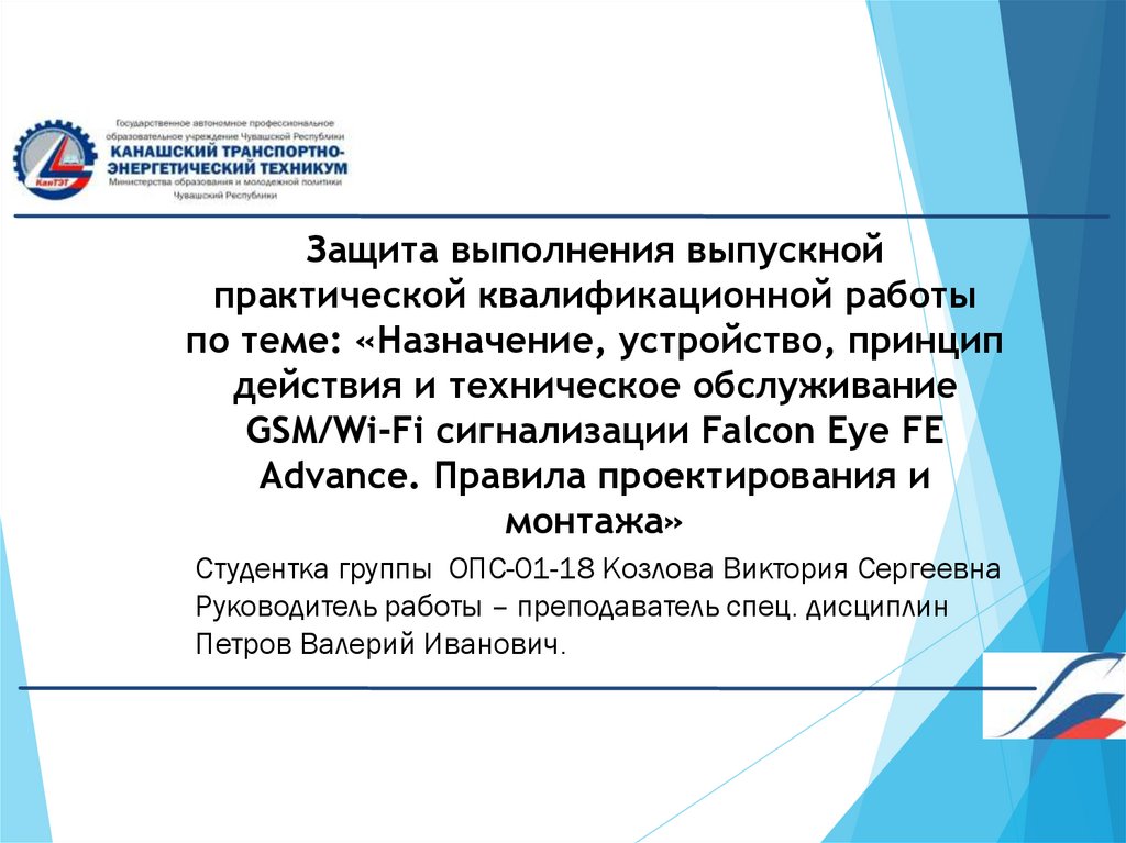 Квалификационная работа по теме: «Назначение, устройство, принцип действия Gsm/wi-fi сигнализации Falcon Eye Fe Advance»