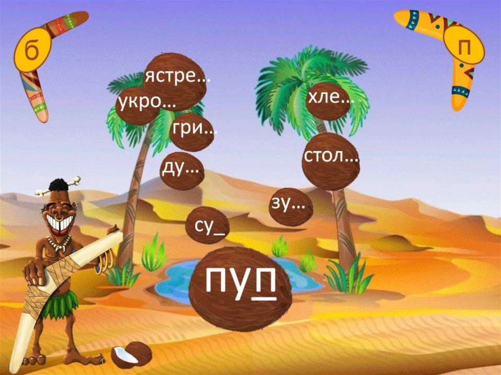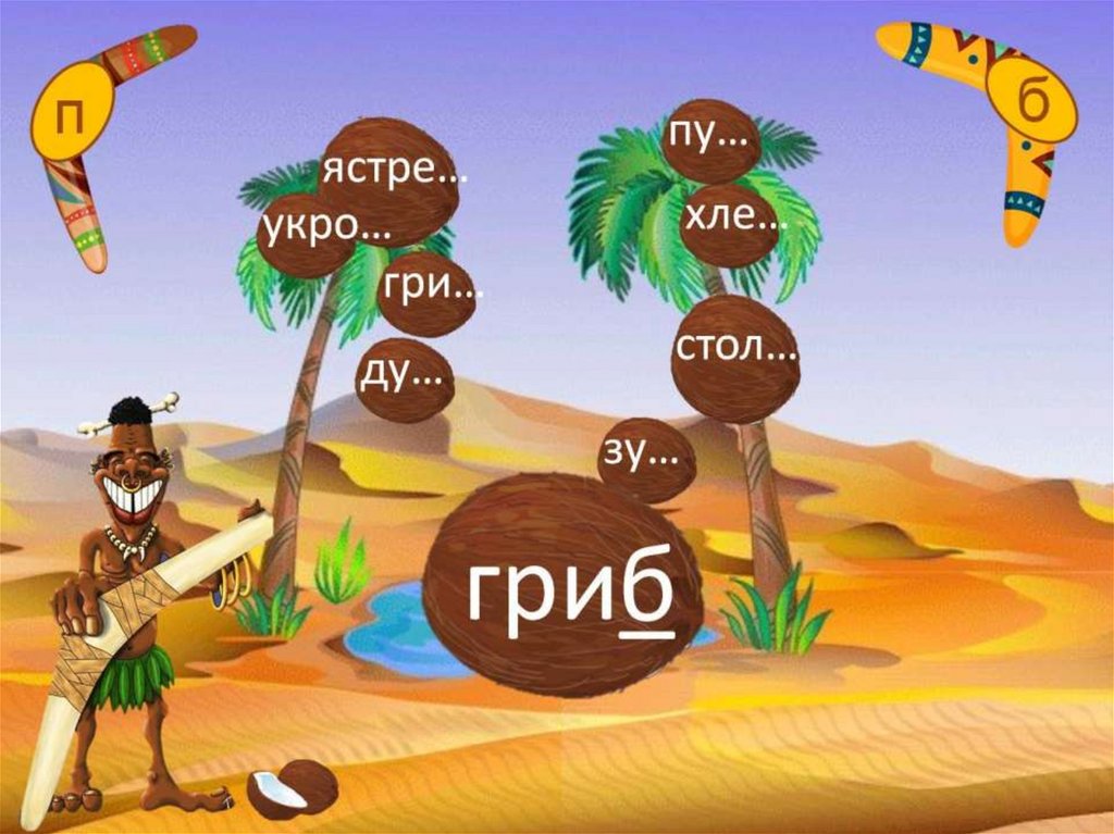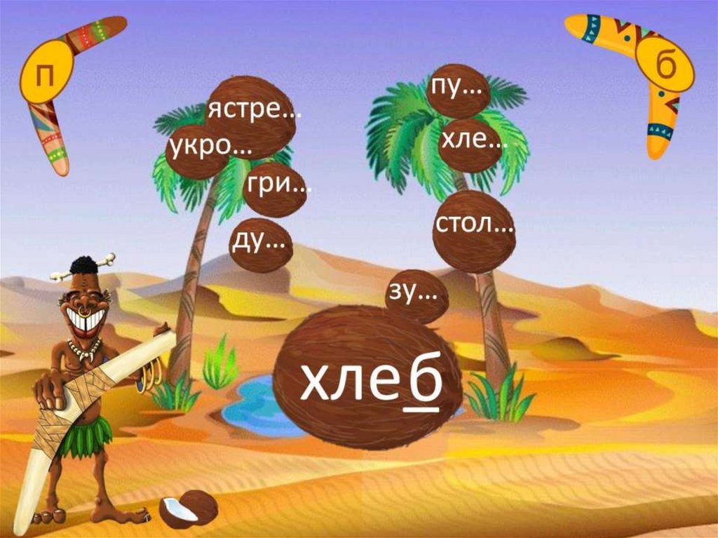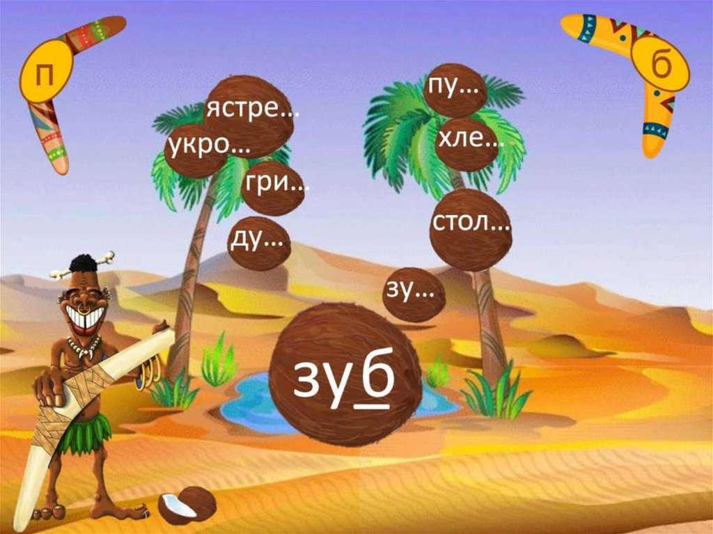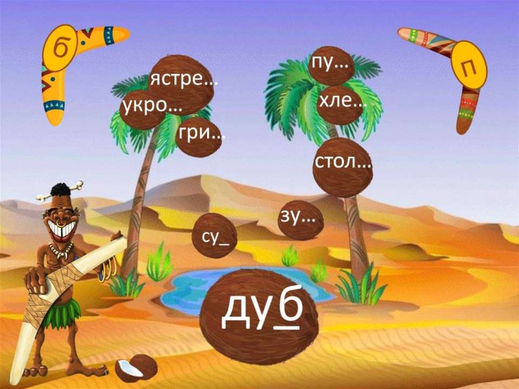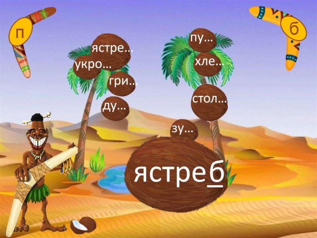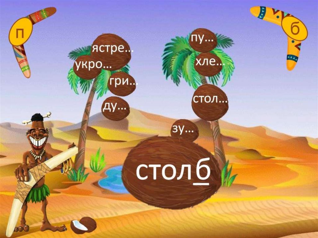 Сбей кокос. Парные согласные в конце слова (викторина)