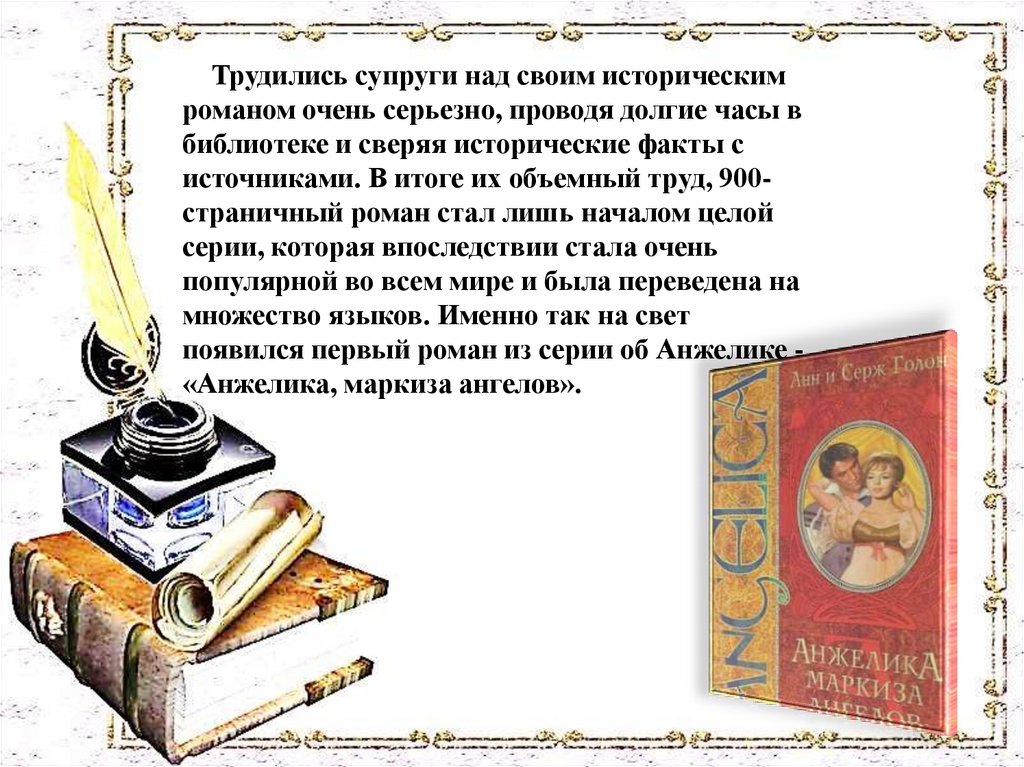 Трудились супруги над своим историческимроманом очень серьезно, проводя долгие часы в