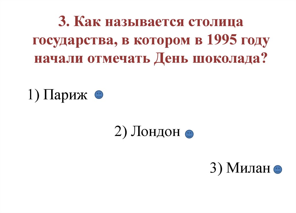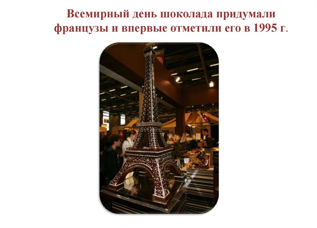 Всемирный день шоколада придумалифранцузы и впервые отметили его в 1995 г.
