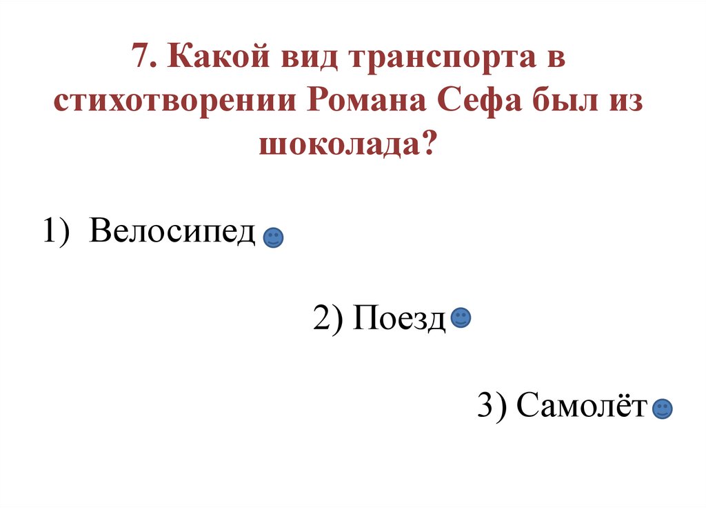 7. Какой вид транспорта встихотворении Романа Сефа был из