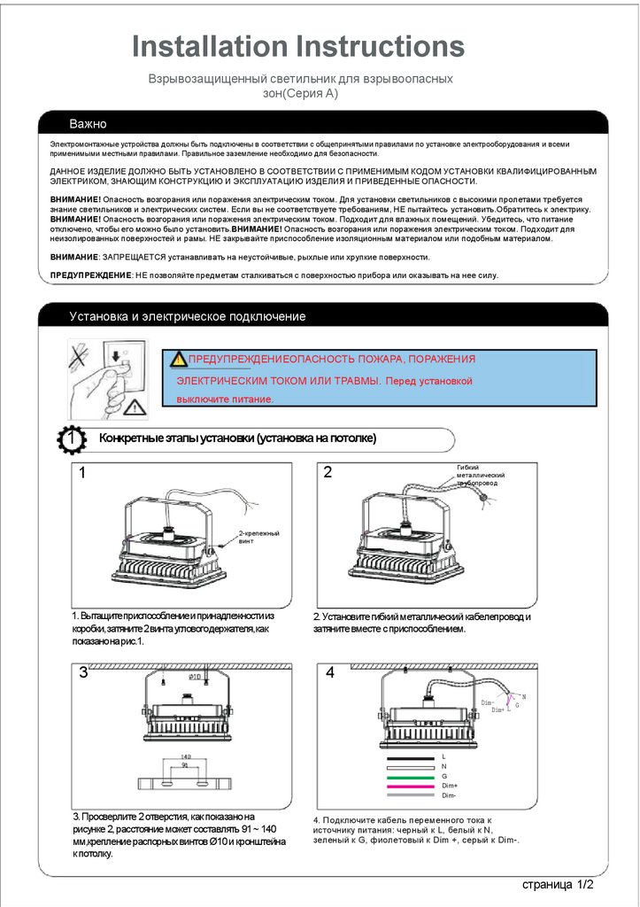 Installation InstructionsВзрывозащищенный светильник для взрывоопасных
