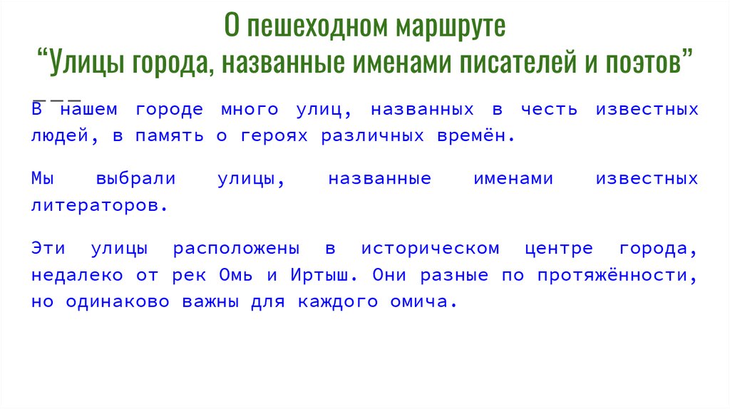 О пешеходном маршруте“Улицы города, названные именами писателей и поэтов”
