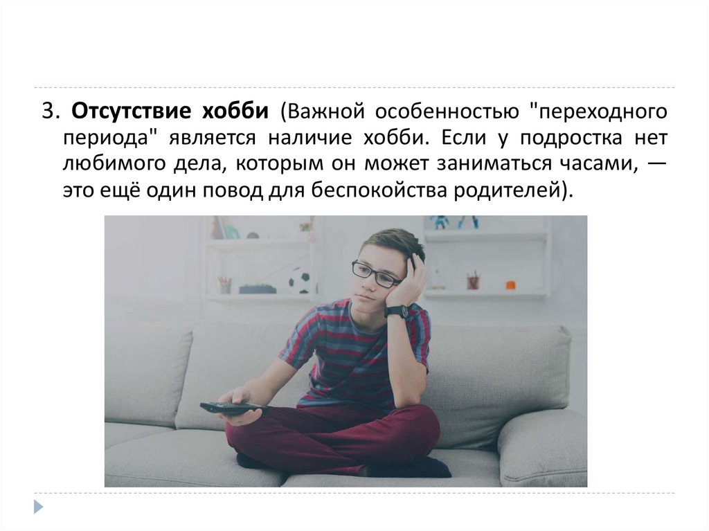 3. Отсутствие хобби (Важной особенностью "переходногопериода" является наличие хобби. Если у подростка нет