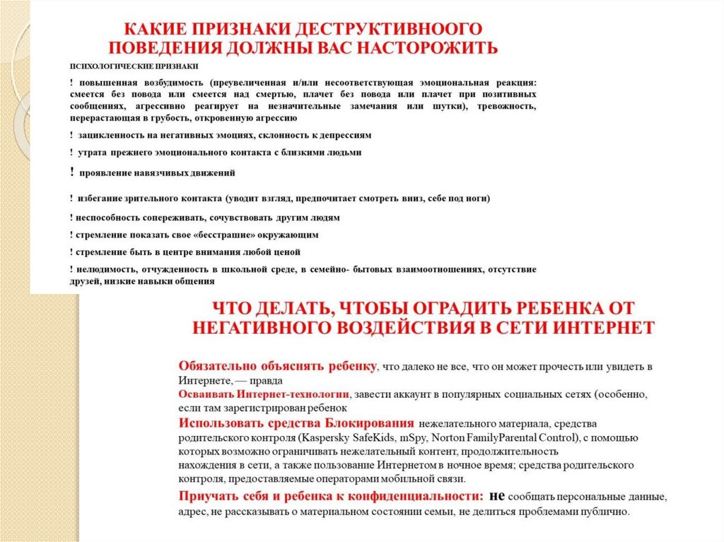 Алгоритм для родителей по раннему выявлению и реагированию на деструктивное поведение несовершеннолетних