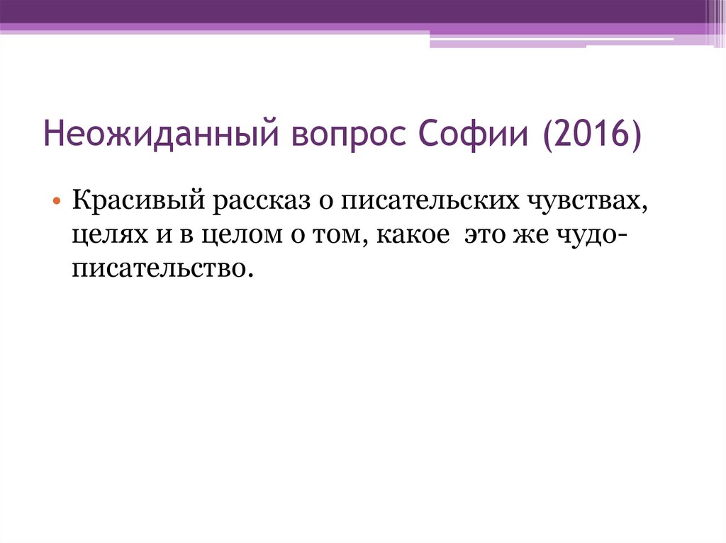 Неожиданный вопрос Софии (2016)• Красивый рассказ о писательских чувствах,