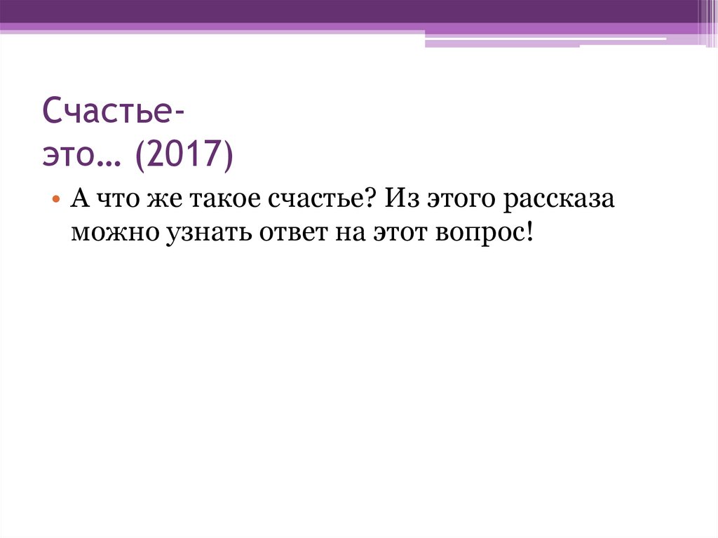 Счастьеэто… (2017)• А что же такое счастье? Из этого рассказа