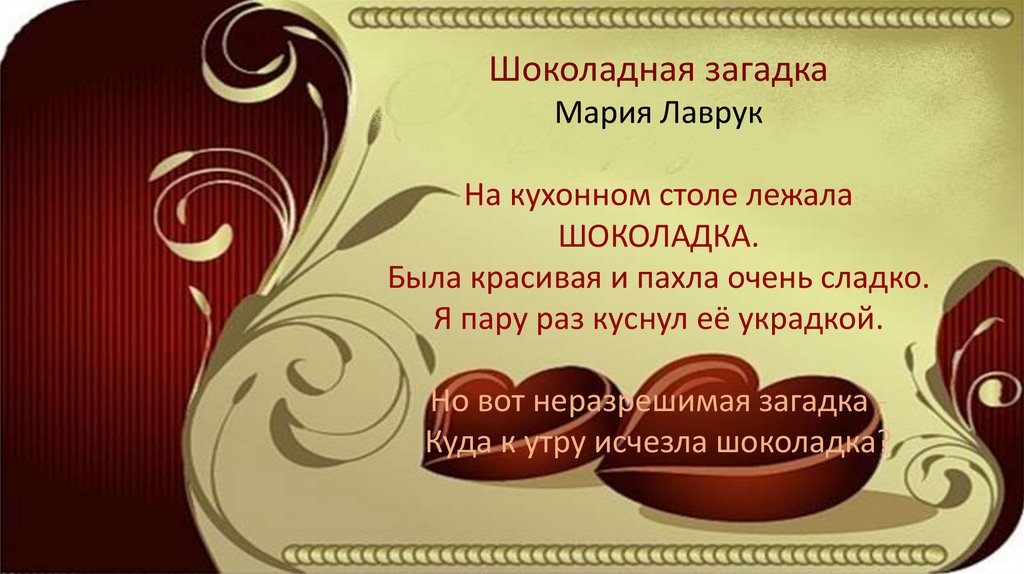Но вот неразрешимая загадка Куда к утру исчезла шоколадка?