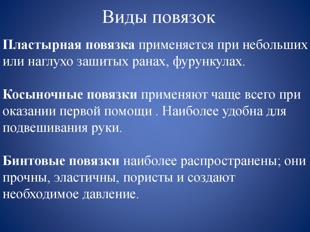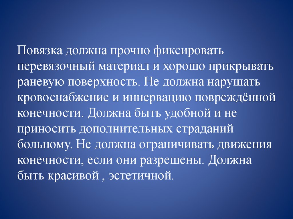 Повязка должна прочно фиксироватьперевязочный материал и хорошо прикрывать