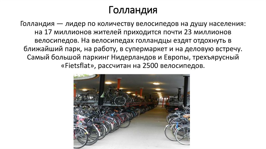ГолландияГолландия — лидер по количеству велосипедов на душу населения: