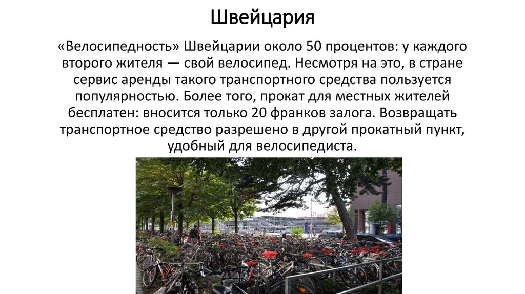 Швейцария«Велосипедность» Швейцарии около 50 процентов: у каждого