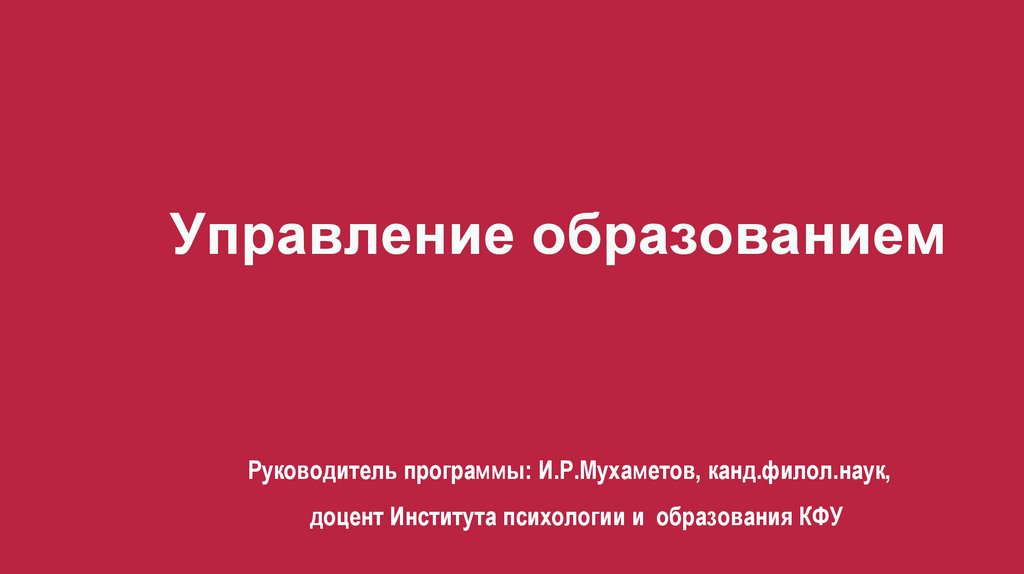 Управление образованиемРуководитель программы: И.Р.Мухаметов, канд.филол.наук,