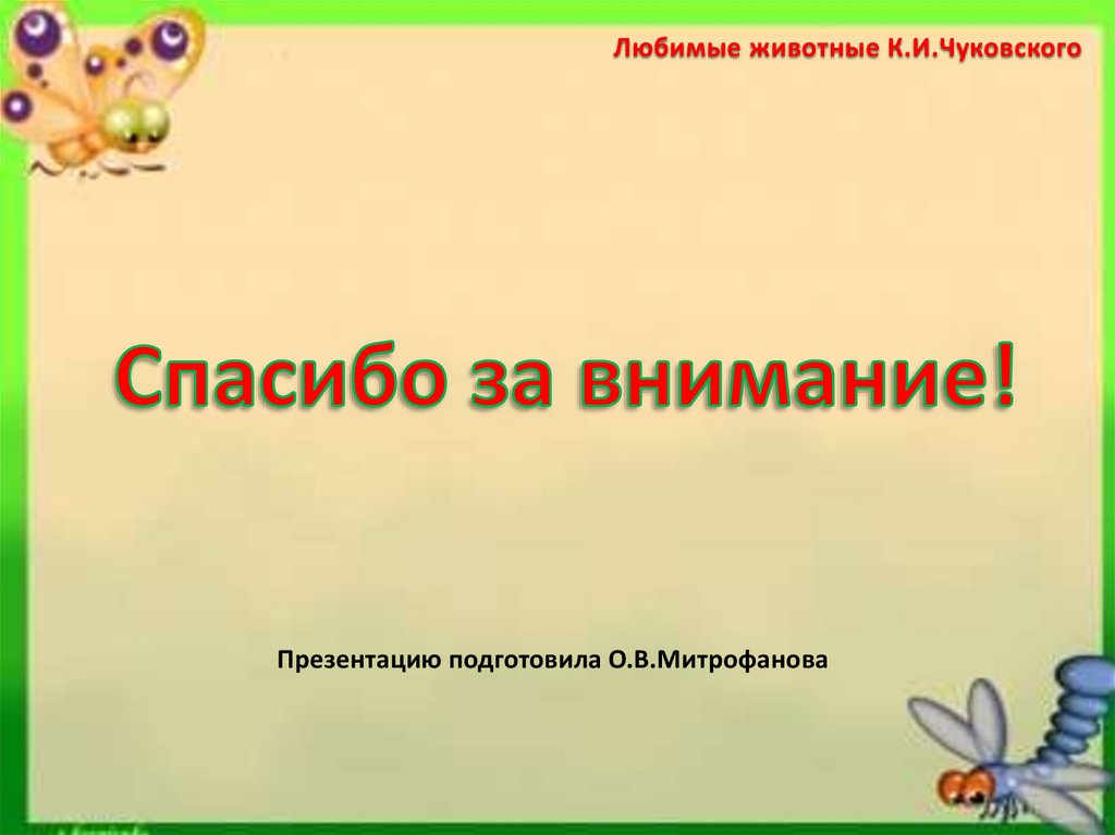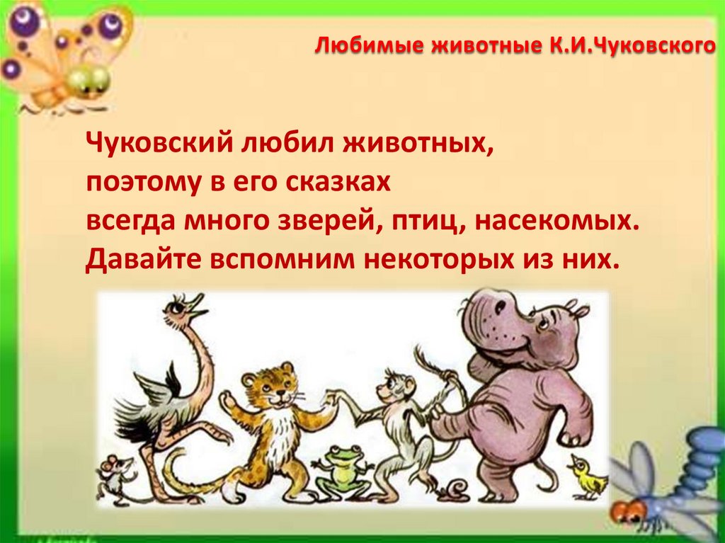 Любимые животные К.И.ЧуковскогоПрезентацию подготовила О.В.Митрофанова