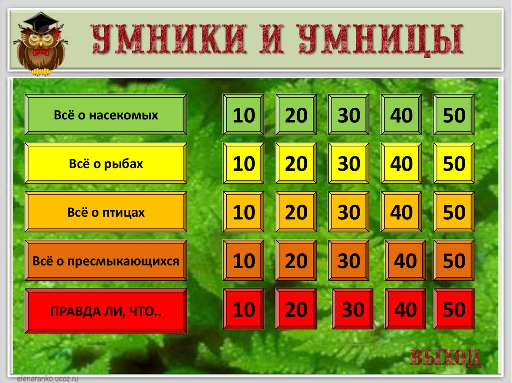 Своя игра «Живая планета». Познавательная биологическая игра 7 класс