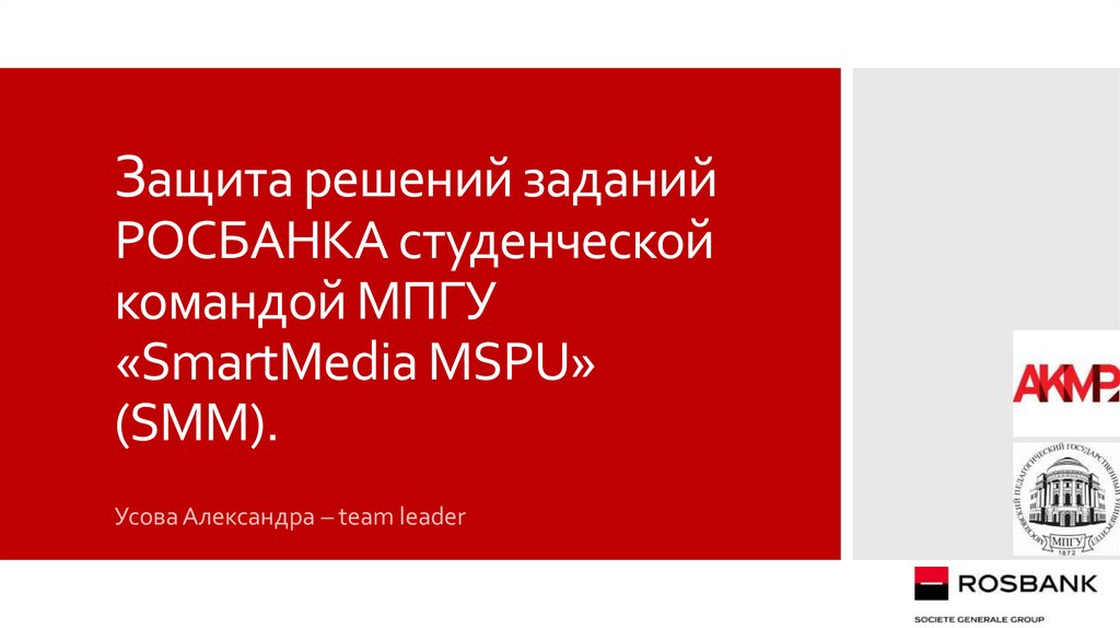 Защита решений заданий РосБанка студенческой командой МПГУ «SmartMedia MSPU» (SMM)