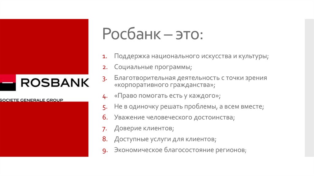 Росбанк – это:1. Поддержка национального искусства и культуры;