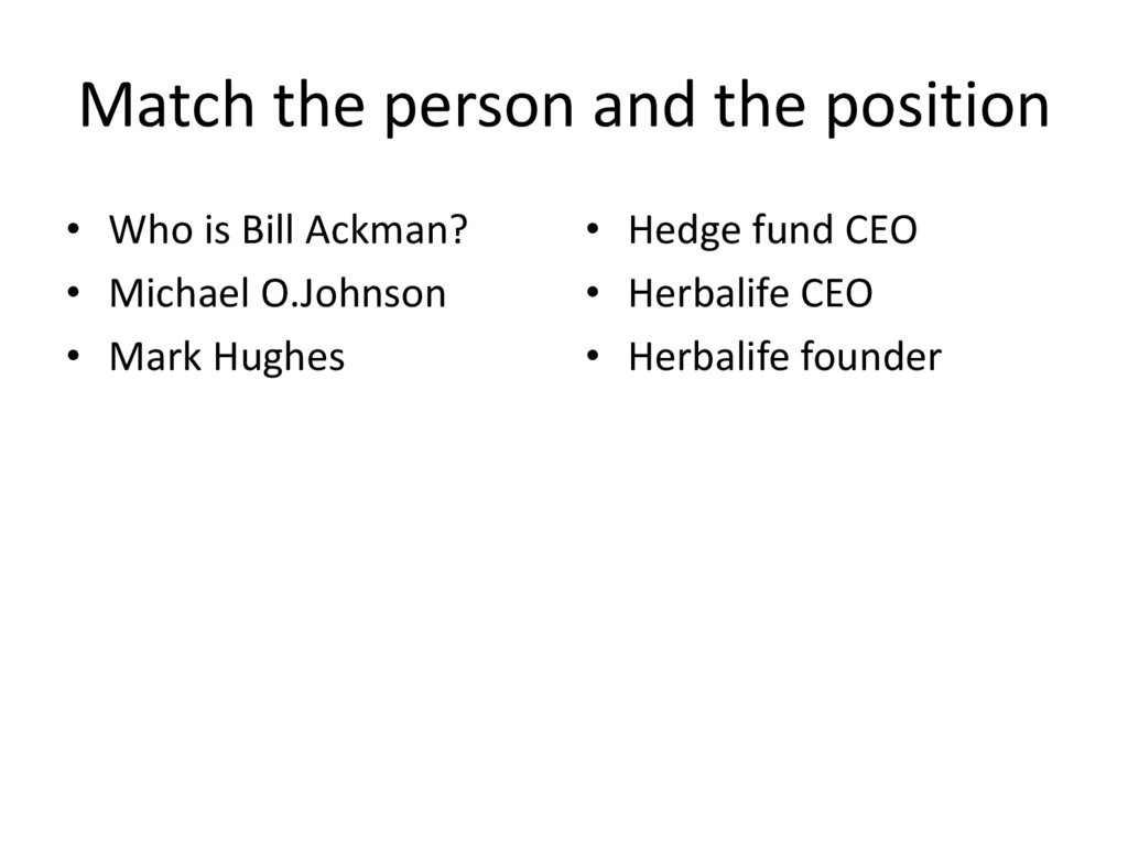 Match the person and the position• Who is Bill Ackman?