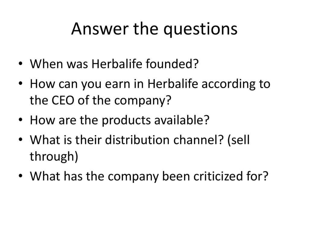 Before watchingWhat is Herbalife?
