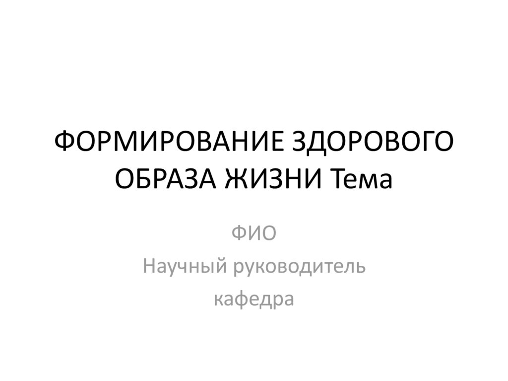 ФОРМИРОВАНИЕ ЗДОРОВОГООБРАЗА ЖИЗНИ Тема