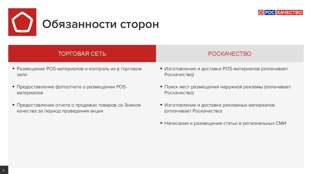 Обязанности сторонТОРГОВАЯ СЕТЬ