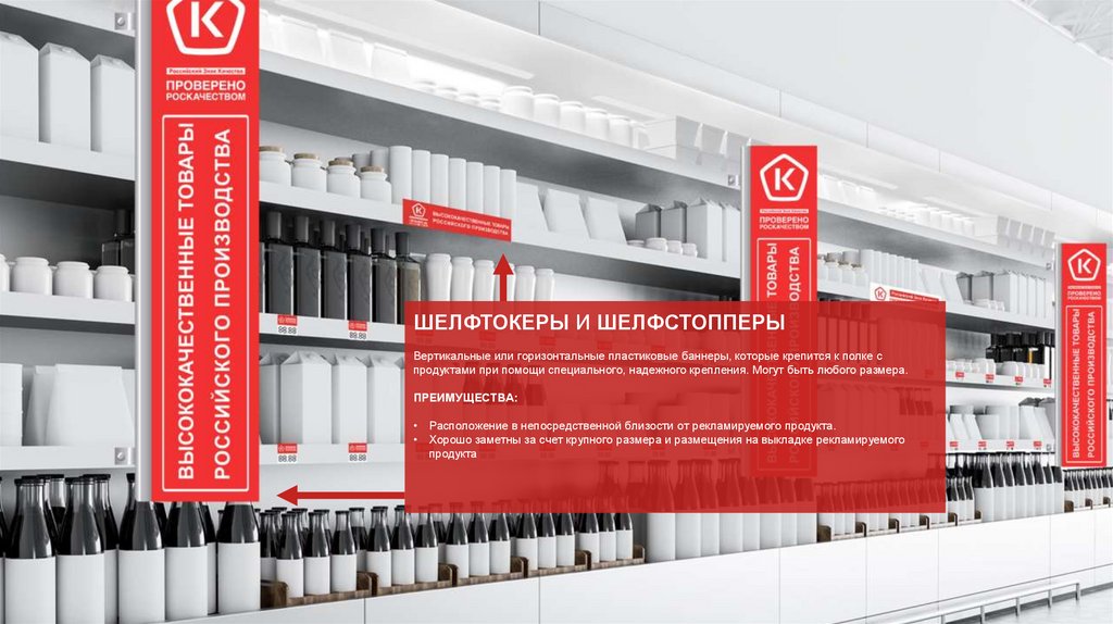 ШЕЛФТОКЕРЫ И ШЕЛФСТОППЕРЫВертикальные или горизонтальные пластиковые баннеры, которые крепится к полке с