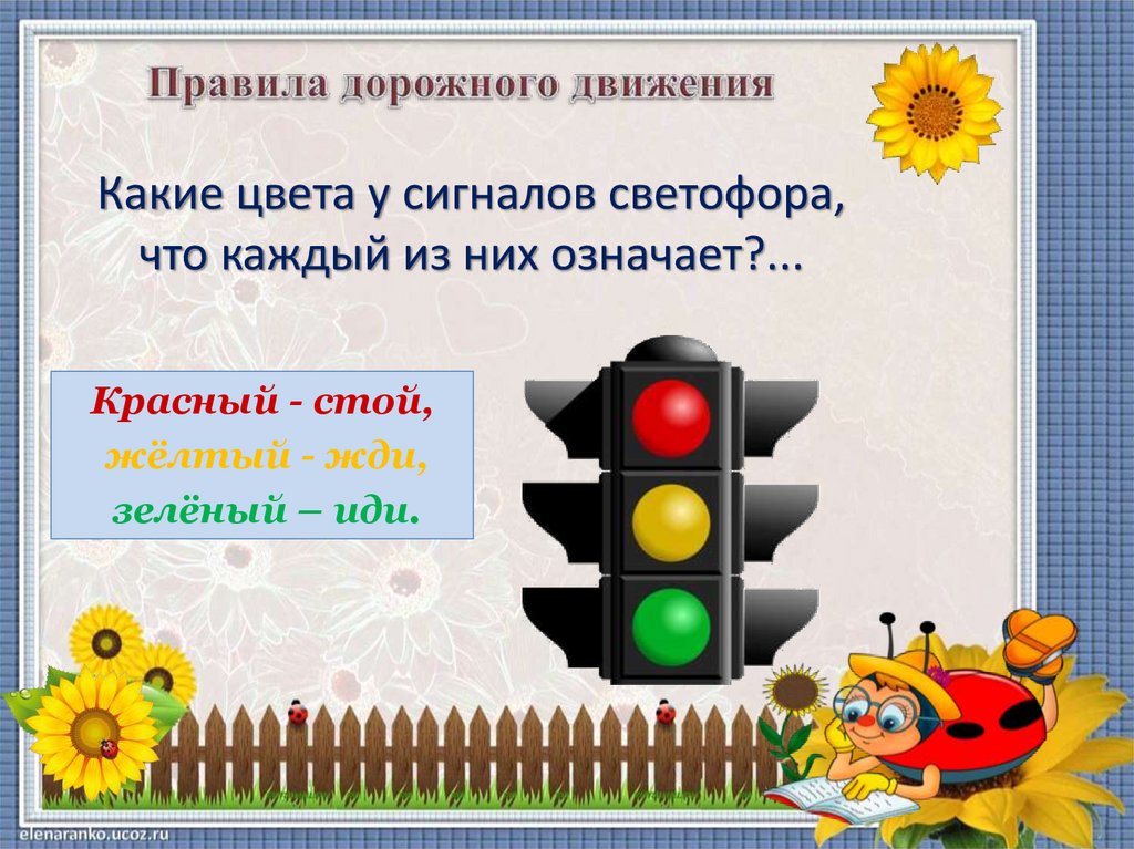 Какие цвета у сигналов светофора,что каждый из них означает?...