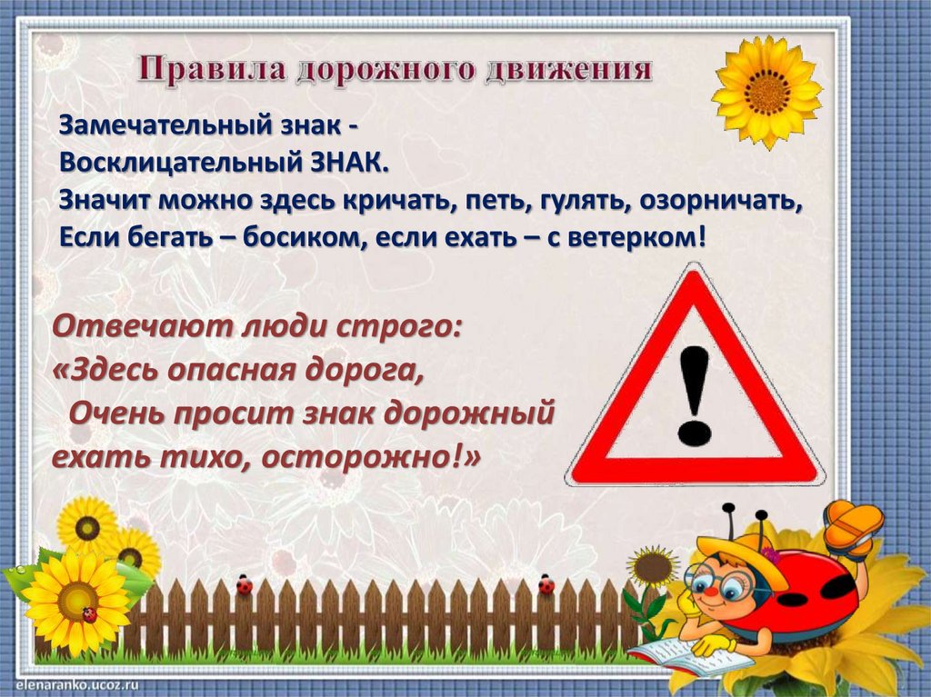 Замечательный знак Восклицательный ЗНАК.Значит можно здесь кричать, петь, гулять, озорничать,