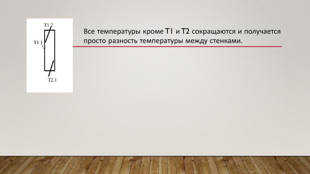 Все температуры кроме T1 и T2 сокращаются и получаетсяпросто разность температуры между стенками.