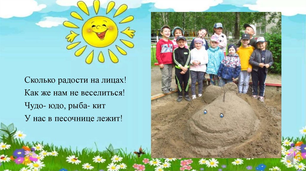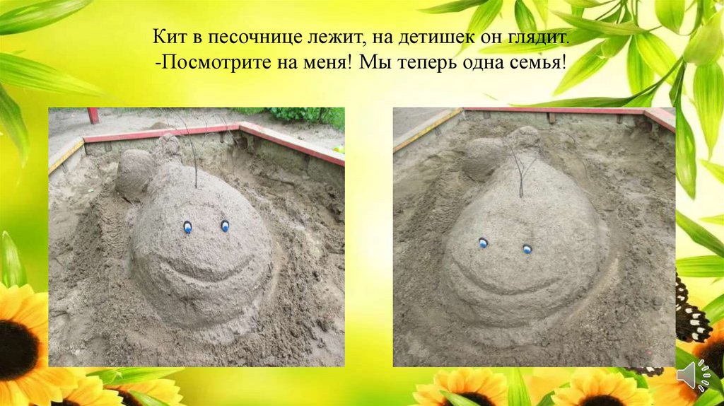 Кит в песочнице лежит, на детишек он глядит.