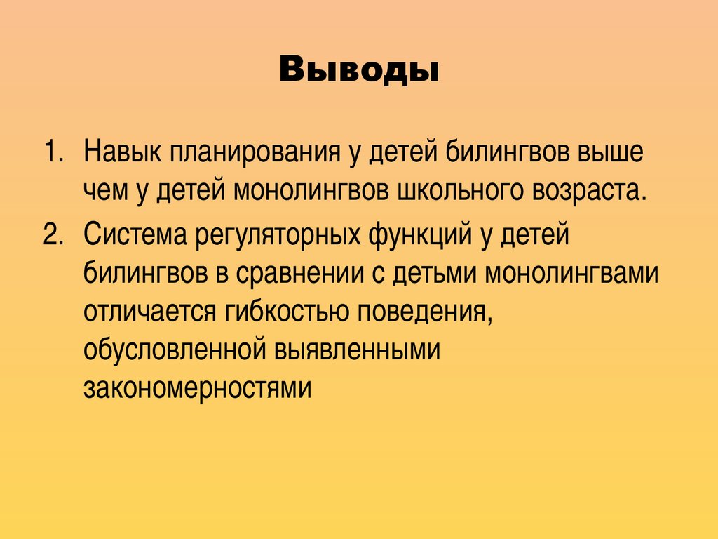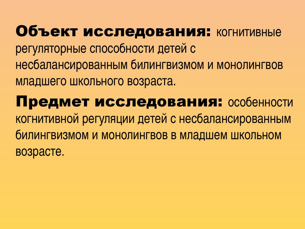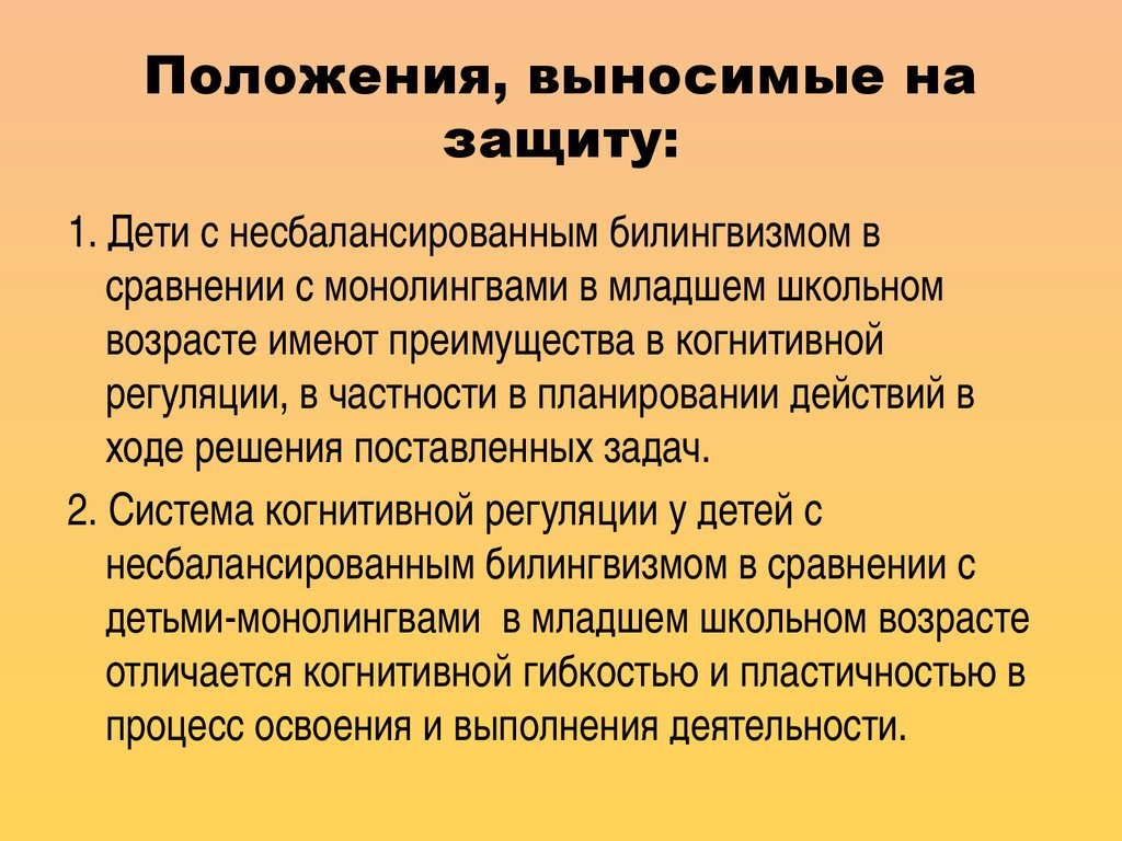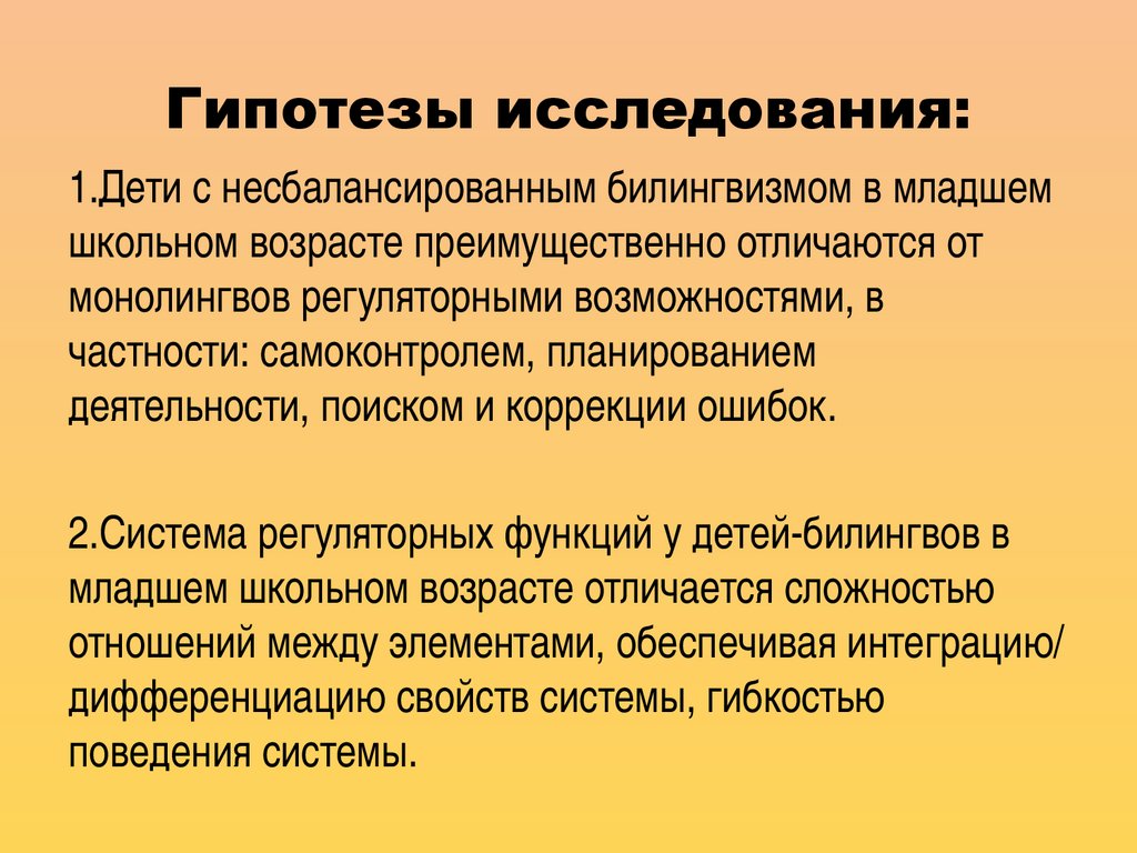 Гипотезы исследования:1.Дети с несбалансированным билингвизмом в младшем