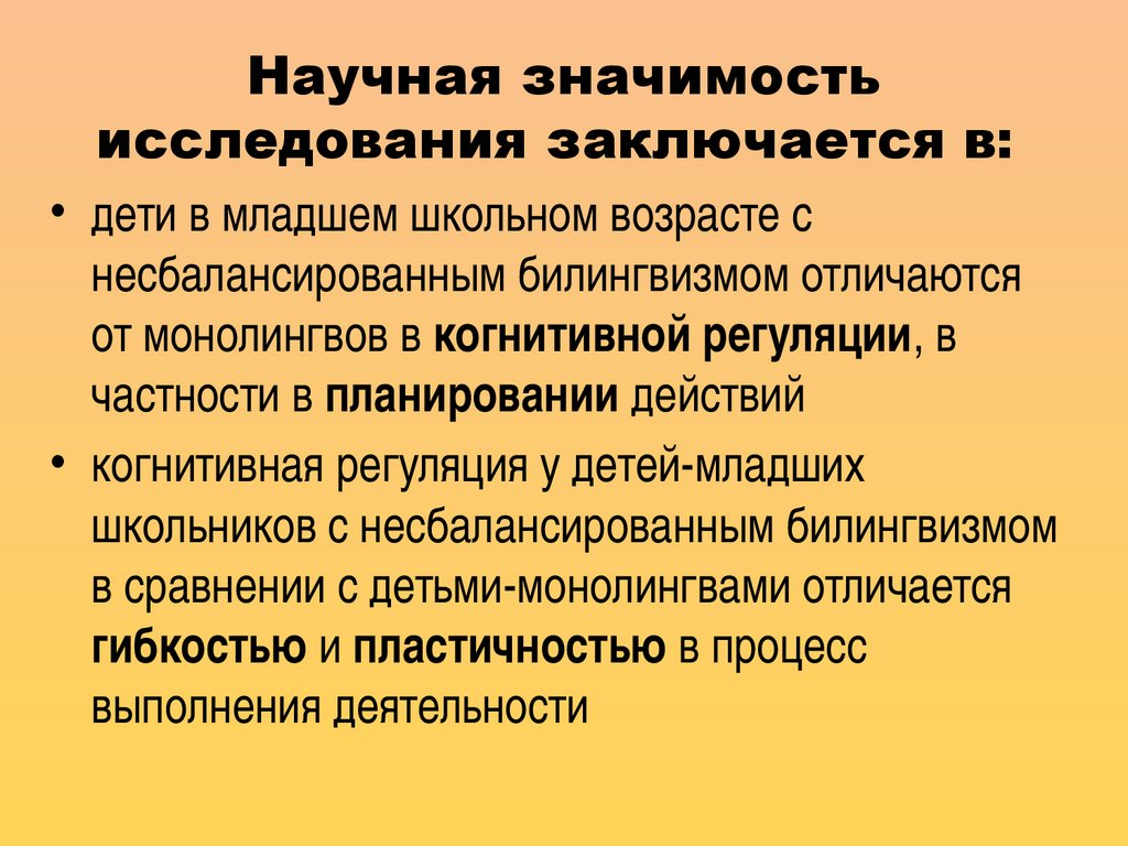 Особенности когнитивной регуляции билингвов и монолингвов в младшем школьном возрасте