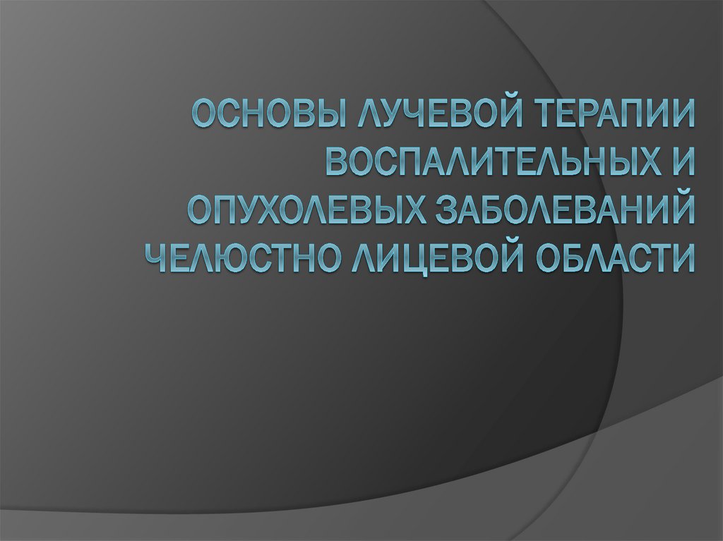 Основы лучевой терапии воспалительных и опухолевых заболеваний челюстно лицевой области
