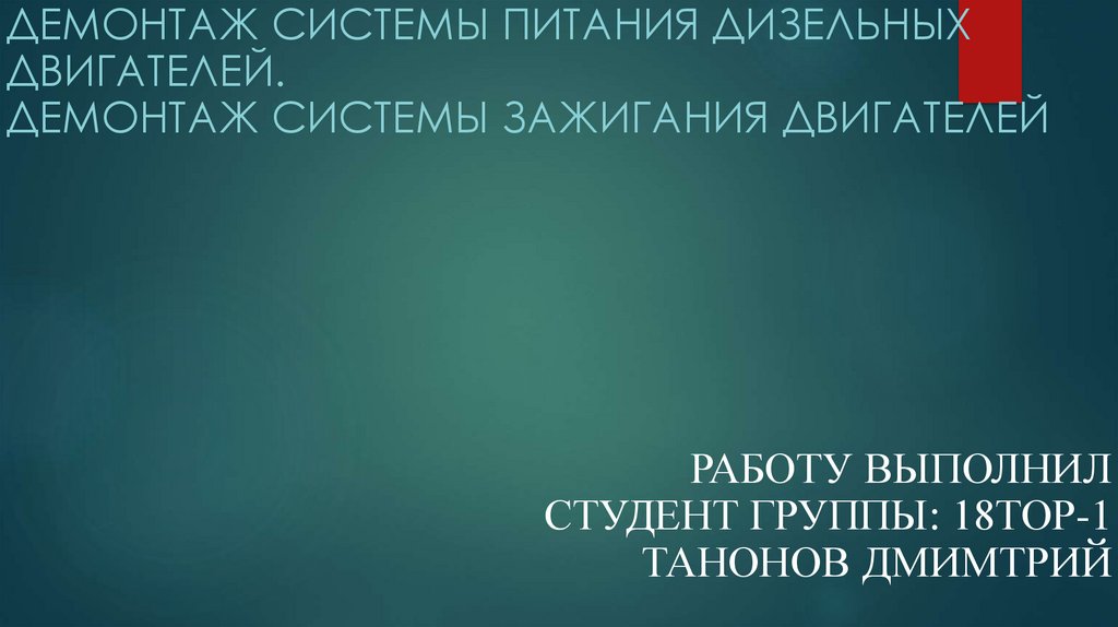 ДЕМОНТАЖ СИСТЕМЫ ПИТАНИЯ ДИЗЕЛЬНЫХДВИГАТЕЛЕЙ.